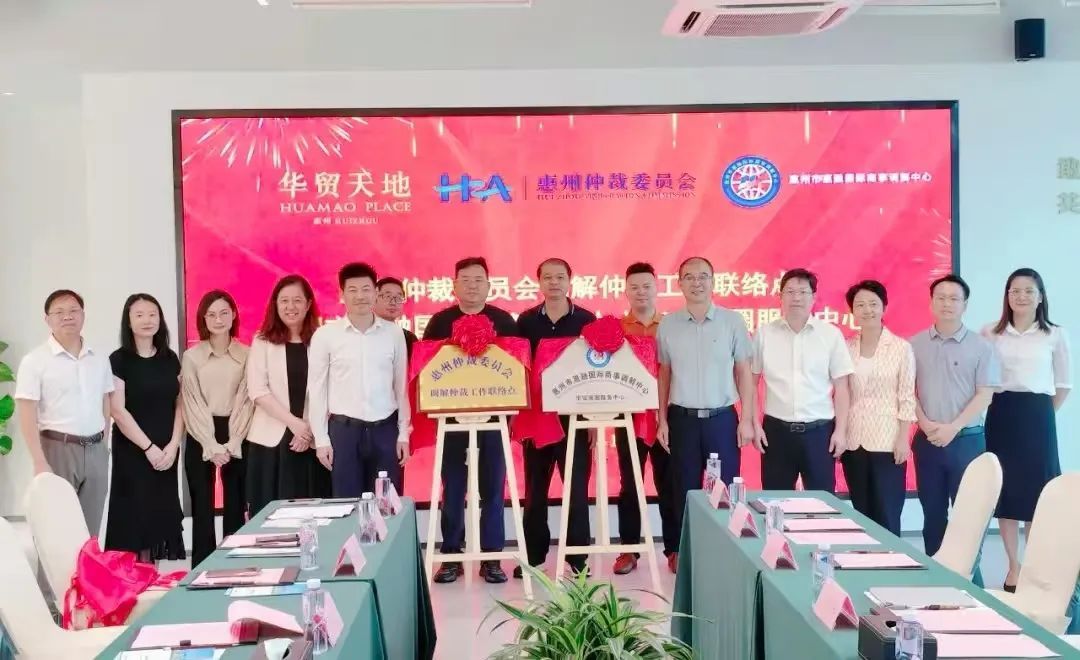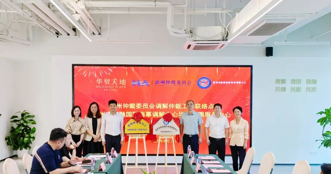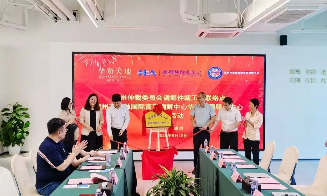 随着各单位领导共同为两个服务站点揭牌,标志着惠州市惠融国际商事调解中心华贸商圈服务中心正式成立。作为扎根华贸商圈的专业调解平台,该中心将与仲裁工作联络点协同联动,构建“仲调一体化”服务体系,为商圈企业提供近距离、高效率的纠纷解决支持。