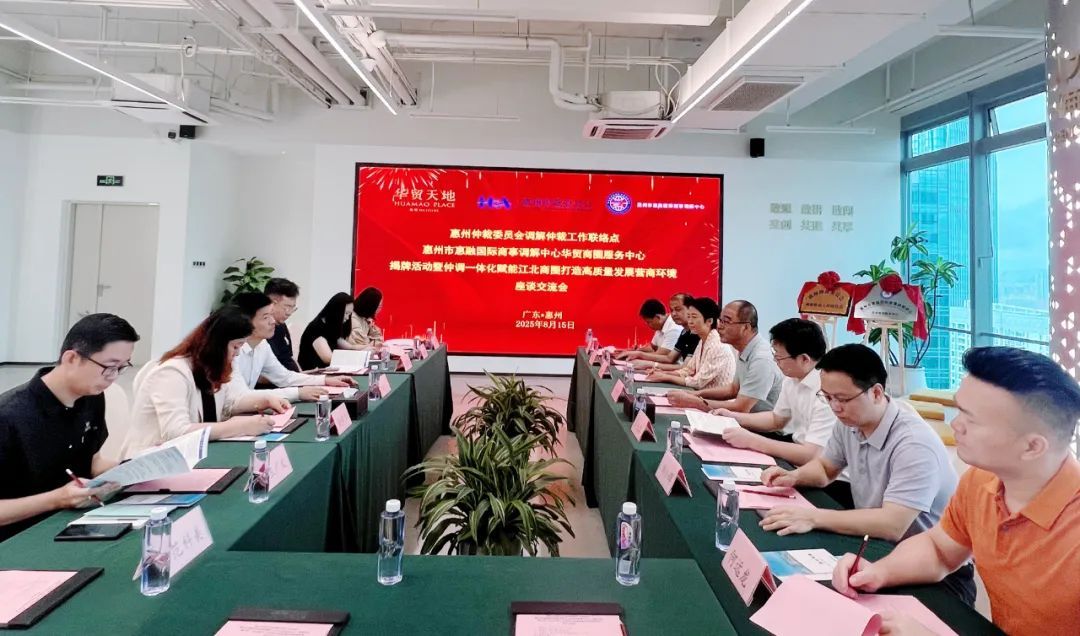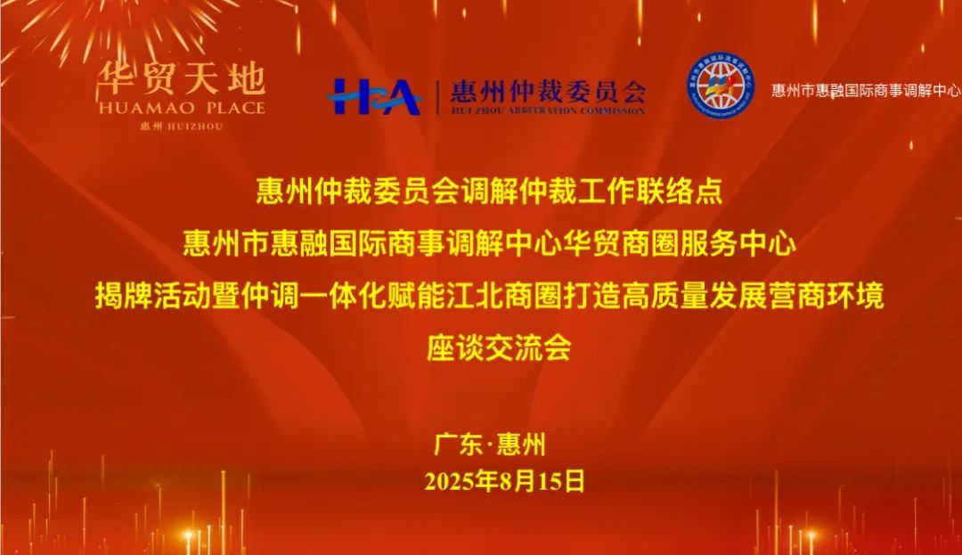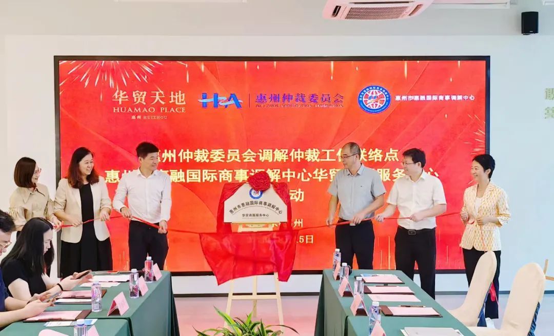 惠州仲裁委员调解仲裁工作联络点、惠融调解中心华贸商圈服务中心揭牌活动暨仲调一体化赋能江北商圈座谈会圆满举行