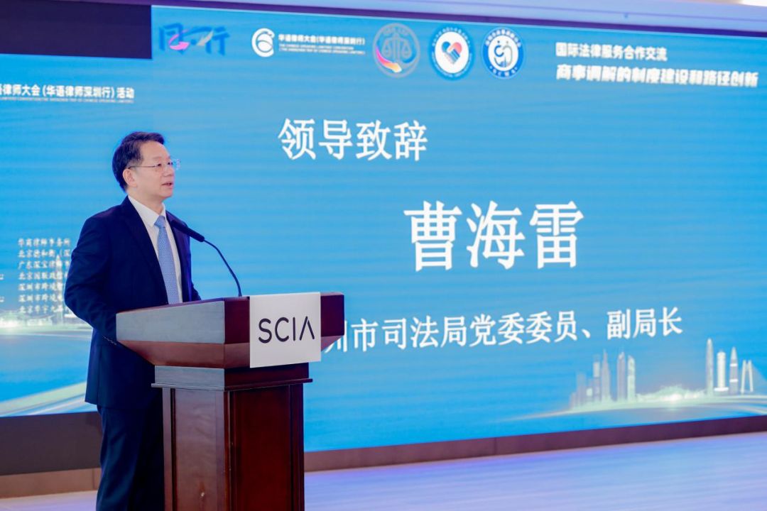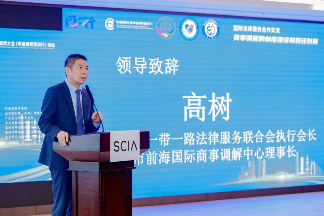 首先,深圳市前海一带一路法律服务联合会执行会长、前海国际商事调解中心理事长高树,深圳市司法局党委委员、副局长曹海雷,深圳国际仲裁院秘书长赵枫先后发表致辞,对活动举办表示祝贺,强调跨境商事调解在当前经济环境中的重要性及协同创新发展的愿景。