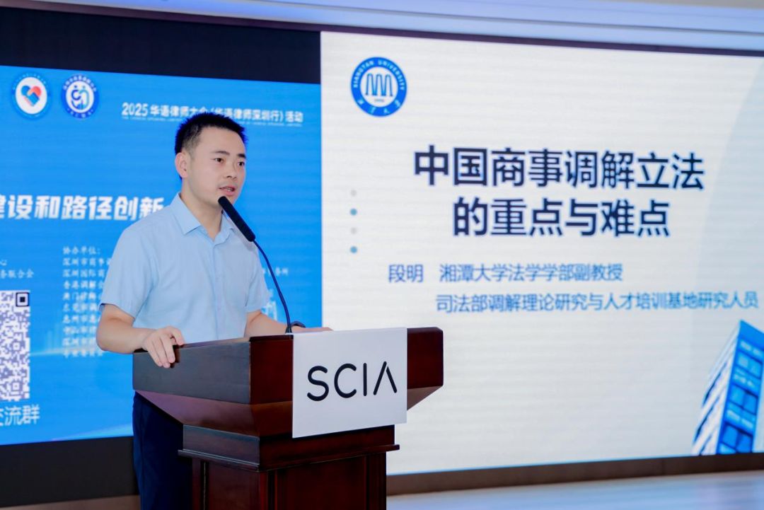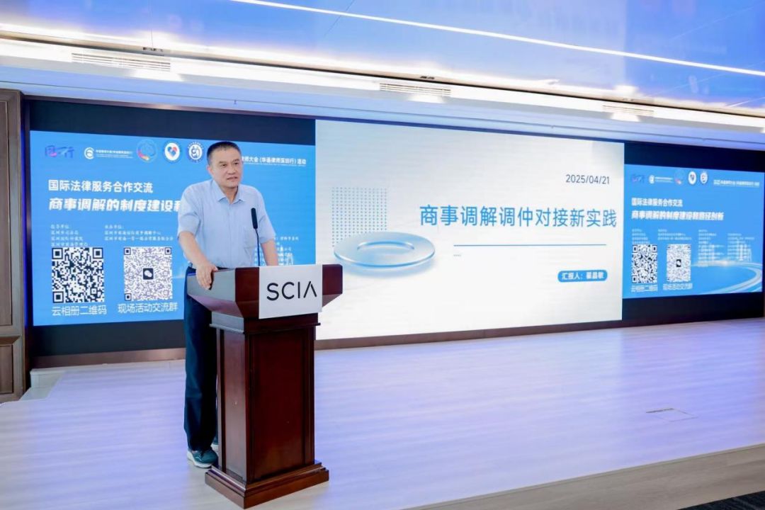 在主旨演讲环节,湘潭大学法学学部副教授段明,聚焦“中国商事调解立法的重点与难点”展开解读;深圳国际仲裁院国际合作与发展处副处长迟文卉,探讨“多元解纷实践探索与华语律师角色”;北京多元调解发展促进会会长翟晶敏,介绍“中国商事调解的调仲实践”经验;国联政信科技有限公司研发中心总监郭少堋,阐述“前海国际商事调解中心的数字化实践”成果;香港调解会主席卢上赐,分享“调解与仲裁合作在香港的实践与经验”。