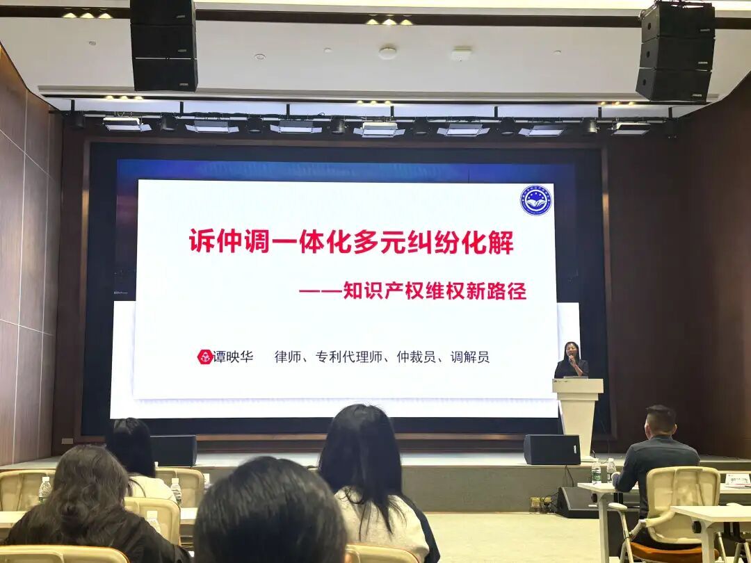 最后,惠州市知识产权协会副会长兼秘书长、惠融国际商事调解中心理事谭映华进行了《诉仲调一体化多元纠纷化解》的讲解,系统梳理了知识产权纠纷的常见类型,对比分析了诉讼、仲裁、调解三种解决方式的优势与特点。通过案例展示了企业应如何根据需求选择维权路径,强调了多元化解机制在优化营商环境中的重要作用。