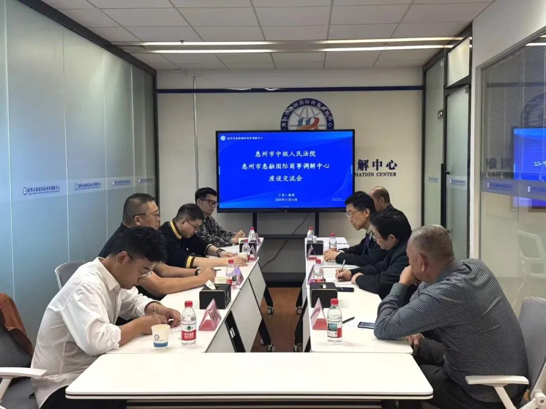 11月13日下午,惠州市中级人民法院(以下简称“市中院”)民四庭庭长王瑞南、副庭长张竹、法官助理李佳乐、书记员湛浩星到访惠州市惠融国际商事调解中心(以下简称“中心”)交流指导。中心理事长危兆宾、联合党支部书记马德斌,以及我中心粤港澳大湾区调解员代表毕文泰等共同参与座谈,双方就涉外商事争议诉调对接实务等议题进行了深入探讨。